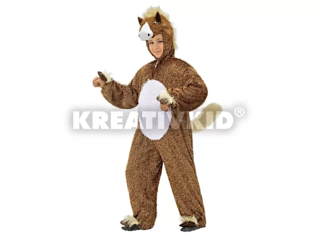 A mókás lójelmez teljesen egybevarrt kezeslábasként önfeledt játékot garantál a kicsiknek, melynek kapucniján aranyos lómaszk kapott helyet. A végig szőrmehatású, puha tapintású jelmez sörénnyel, farokkal is ellátott, valamint a kezein és lábain plüsspaták szolgálnak a még élethűbb megjelenésért. Ha imádod a lovakat, és egyedi megjelenést szeretnél a jelmezbálra, válaszd a plüss lójelmezt!