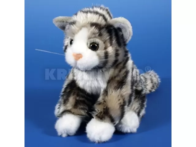 Plüss macska szürke csíkos 18cm