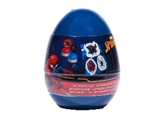Meglepetés tojás Pókember mintával. A tojásban hegyező, radír, ceruza, nyomda és matricák találhatók. Az, hogy pontosan mi lapul a tojásban, legyen me...