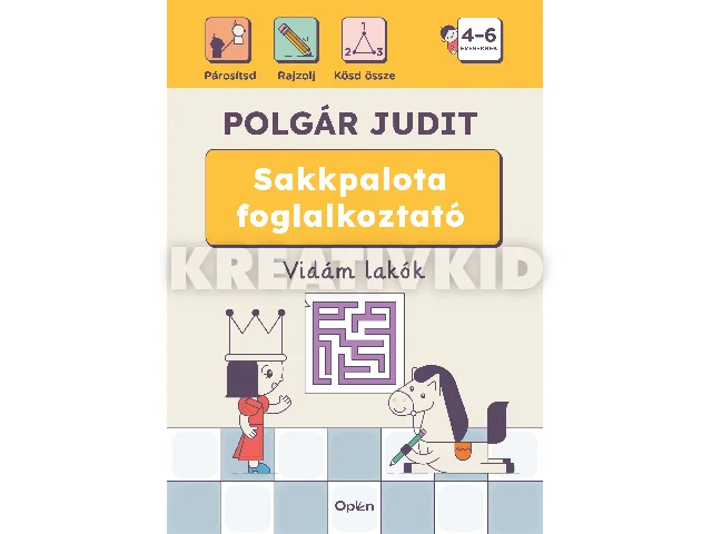 Ismerkedj a Sakkpalota lakóival és a sakkal izgalmas feladatokon keresztül! Színezz, rajzolj, lépkedj, kösd össze, párosíts, böngéssz!A Sakkpalota foglalkoztatósorozat Polgár Judit nemzetközi sakknagymester egyedülálló oktatási módszere alapján készült. Játékos fejlesztés 46 éveseknek finommotorikus készségek logikai és stratégiai gondolkodás a sakktanulás megalapozása