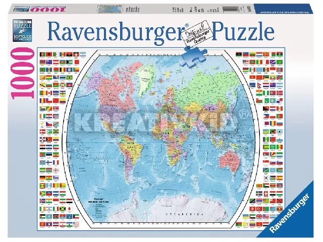 1000 darabból álló puzzle, melyen részletesen megtalálható a Föld összes országa és zászlója.