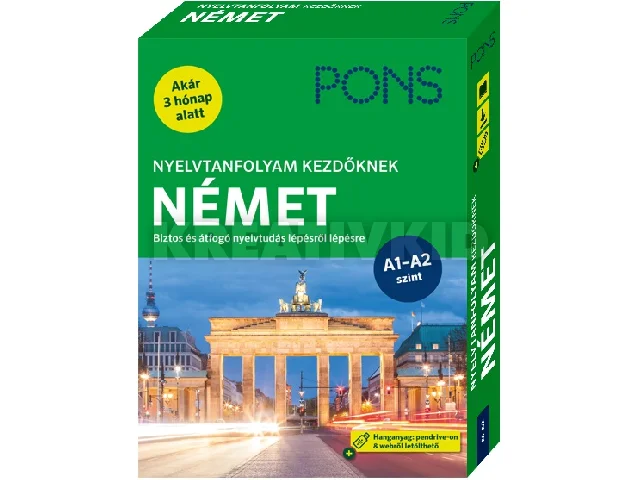 Németül akarsz tanulni, méghozzá eredményesen? A Német Nyelvtanfolyam kezdőknek segíteni fog abban, hogy megfelelő biztonsággal szólalhass meg. Ajánljuk azoknak a kezdő, vagy újrakezdő németeseknek, akiket nem ijeszt meg az önálló nyelvtanulás és szeretik hasznos dolgokra fordítani az idejüket. Ráadásul akár 3 hónap alatt eljuthatsz arra a szintre, hogy megszólalj németül alapfokon.20 leckén át lépésről lépésre tanulhatsz németül, és ismerheted meg a német kultúrát.Motiváló: A fordulatos kerettörténet és a színes grafika ébren tartja a figyelmed.Komplett nyelvi készségfejlesztés: Feladatok, nyelvtani magyarázatok, tanulási tippek és német hallás utáni gyakorlatok.Önálló tanulás: Hanganyag, szószedet, nyelvtani függelék és megoldókulcs is segít.Önellenőrzés: Tudásodat az ismétlő fejezetek mérik és mélyítik el.Hanganyag: Pendrive-on megtalálod a dobozban, de letöltheted a webről is.Biztos alap a további tanuláshoz.