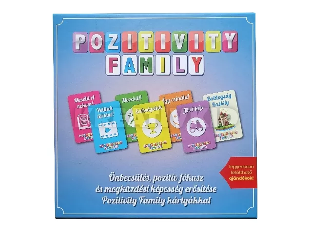 A Pozitivity Family társasjáték egy olyan pszichológiai társasjáték, amely a családi összetartozás és a pozitív gondolkodás fejlesztésére szolgál. A játék célja, hogy a családtagok közötti szoros kötelékek elmélyítésével erősítse az önbizalmat és az önbecsülést. A játék kifejezetten családok számára lett kifejlesztve, így lehetőséget biztosít arra, hogy a családtagok együtt játszhassanak, fejlődhessenek és nevethessenek. A játék segítségével a játékosok pozitív megközelítésmódot alakíthatnak ki, miközben minőségi időt töltenek el együtt, ami hozzájárul a pszichológiai és érzelmi jóllétük növeléséhez.
