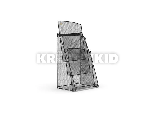 Prospektustartó, fémhálós, asztali, álló, A4, 3 rekesz, ALBA, fekete