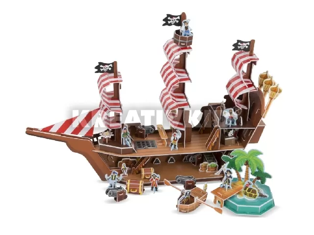 A hajót habszivacsdarabokból kell összeállítanod. Hogy még izgalmasabb legyen a játék a szetthez egy lakatlan sziget, kishajó és további kiegészítők járnak, mint pl. papagáj, kalózok és kincses láda, melyek tökéletesek lesznek szerepjátékokhoz. A játék fejleszti a kézügyességet, kreativitást, megfigyelő- és koncentrációs készségeket, továbbá a tárgyak térbeli kapcsolatának megértését.