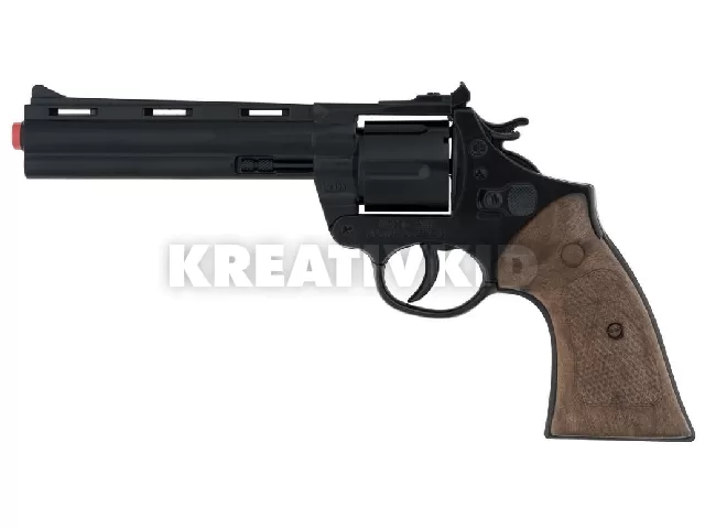 Lövöldözz a nagyobb méretű rózsapatronos revolverrel! A Python patronos revolver egy fémből és műanyagból készült pisztoly, fa utánzat markolattal, és forgótárral. A pisztolyt rózsapatronnal tudod megtölteni, s amikor elsütöd a ravaszt, a fegyver hangosan fog pukkanni. A fegyver 12 darabos patronnal működik, és érdemes kültéren használni, mivel nagyot durran. A csomagolás a patront nem, csak a fegyvert tartalmazza. A Python patronos revolver mérete: 25 cm.