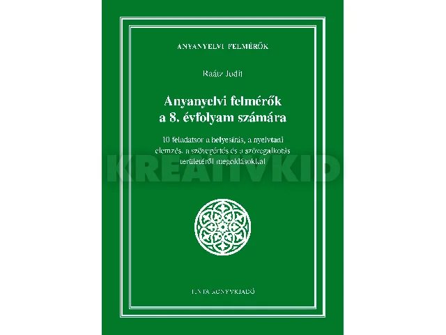 A Tinta Könyvkiadó Anyanyelvi felmérők című sorozatának negyedik, 8. évfolyamosoknak szánt kötetét tartja kezében az olvasó. Az egészen a 12. évfolyamig terjedő munkafüzetek hasznos segítséget jelentenek tanároknak és diákoknak egyaránt.Minden gyakorlatsor egy szövegből indul ki, amelyhez szövegértési, grammatikai és helyesírási feladatok tartoznak. A megoldandó feladatok a szöveg témájához kapcsolódnak. Egyes példák szólások és közmondások, tájszavak, idegen szavak értelmezését gyakoroltatják. A felmérők kiindulási szövegei között található pályázati felhívás, ismeretterjesztő,etimológiai tárgyú írás vagy éppen szótárrészlet is. Ezek segítségével a munkafüzet használói a különböző szövegstílusokról és azok jellemzőiről is benyomásokat szerezhetnek. Minden feladatsort valamilyen játékos nyelvi gyakorlat zár.Mivel a feladatokra meghatározott pontot lehet adni, így az egyes feladatlapok jól használhatók versenyfeladatként, számonkérésként, ellenőrzésként, de hasznosak lehetnek gyakorlásra, ismeretbővítésre is. Ugyan a feladatsorok egyéni megoldásra készültek, de egy kis ötlettel, átalakítással akár páros munkában is megoldhatók, továbbgondolhatók, kiegészíthetők. Ha valaki otthoni, önálló gyakorlásra szeretné használni a munkafüzetet, azt is megteheti, mivel a feladatok megoldását is tartalmazza a kiadvány. Minden feladat mellett megtalálható, hogy a hibátlan megoldásért hány pont adható.A feladatok hasznos segítséget nyújtanak a szövegértés, a helyesírás, a nyelvtani ismeretek gyakorlásához, bővítik a szókincset, fejlesztik az anyanyelvi kompetenciát, és mindezek mellett szórakoztatnak is.A munkafüzet összeállítója, Raátz Judit népszerű tankönyvek, anyanyelvi segédkönyvek szerzője, a Nyelvtudományi Intézet főmunkatársa. A feladatsorokat Nemoda Judit, több évtizedes oktatási tapasztalattal rendelkező vezető magyartanár lektorálta.