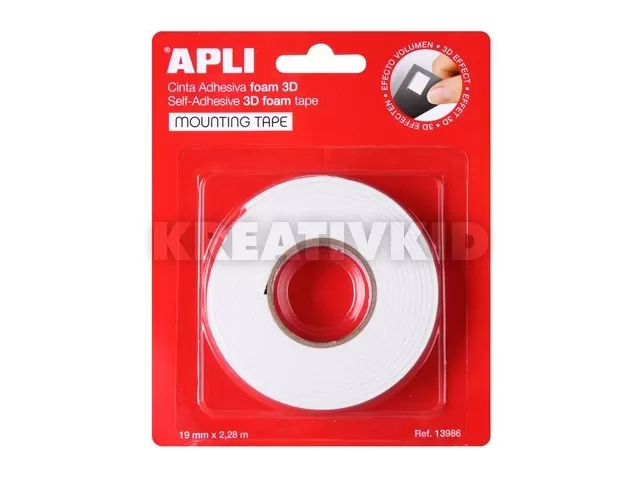 Ragasztó tekercs, 3D, kétoldalas, szivacs, APLI, 19 mm x 2,28 m, fehér