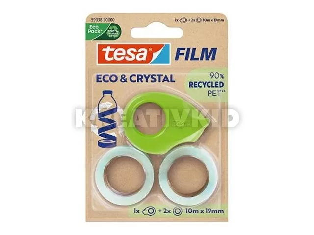 Ragasztószalag adagolóval, 2 db 19 mm x 10 m, TESA "Eco&Crystal", átlátszó