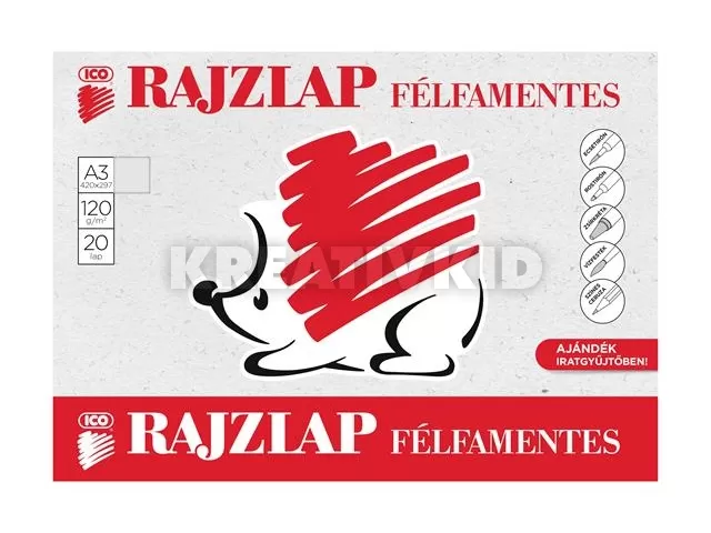 Rajzlap, félfamentes, A3, 120 g/m2, ICO