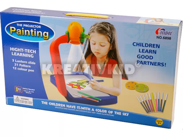 Az ötlet jó, de szinte használhatatlan, mert nem lehet állítani a kivetített képet. Nem a táblára világít, hanem a szélére, ahol már nem tud a gyerek rajzolni. És a képet nem lehet nagyítani sem, csak homályossá tenni.