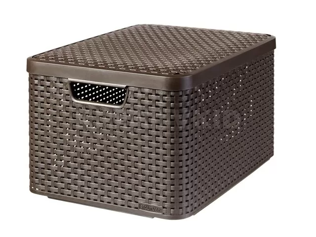 Rattan hatású kosár tetővel, 30l, sötétbarna, CURVER "Style L