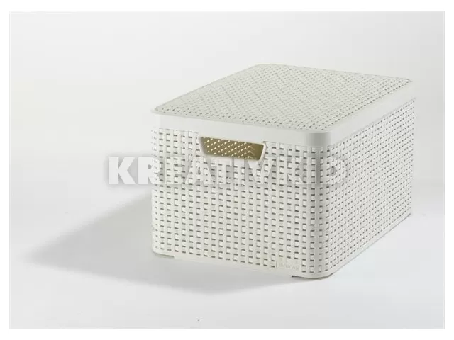 Rattan hatású kosár tetővel, 30l, törtfehér, CURVER "Style L