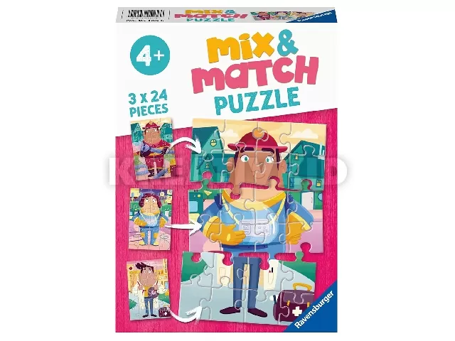 Három barátságos, elfoglalt szakember (űrhajós, tűzoltó és orvos) szerepel ezeken a 24 darabból álló kirakós játékon. Az egyes Professzionálisok fej-, test- és lábrészei felcserélhetők, új embert építve! Képzeld el az űrhajós fejét, a tűzoltó testét és a doktor lábát! 3x 24 darabos Mix & Match gyerekrejtvényünk prémium minőségű anyagokból készült, és készen 26 x 18 cm-es. Remek rejtvények 4 éves kortól.