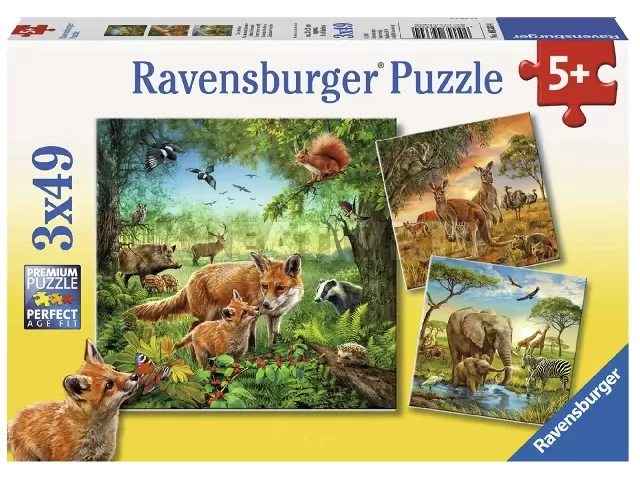 3 izgalmas képet rakhatsz ki ezzel a Ravensburger® kirakóval. Mindegyik középpontjában egy anya áll a kölykével, a háttérben pedig sok színes állatot vehetsz még szemügyre.
