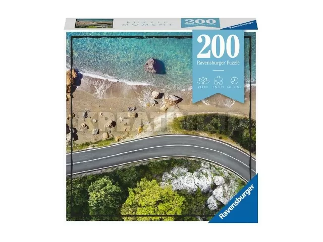 A Ravensburger 200 db-os puzzle - Tengerparti út képén egy csodaszép tengerpart mellett kanyargó út látható.