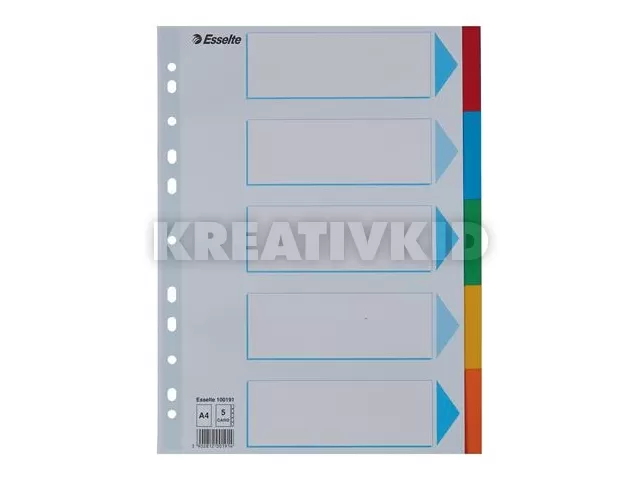 Regiszter, karton, A4, 5 részes, írható előlappal, ESSELTE "Standard", színes