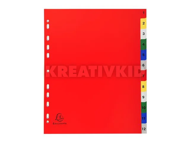Regiszter, műanyag, A4+, 1-12, EXACOMPTA, színes