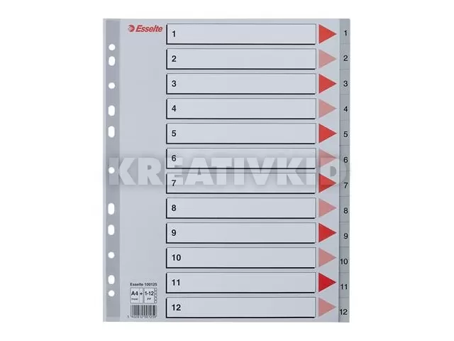 Regiszter, műanyag, A4 Maxi, 1-12, ESSELTE, szürke