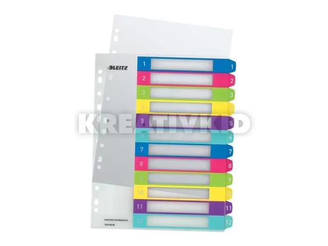 Regiszter, műanyag, A4 Maxi, 1-12, LEITZ