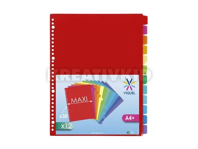 Regiszter, műanyag, A4 Maxi, 12 részes, VIQUEL