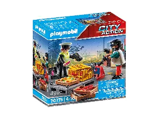 Playmobil Cityben mindig zajlik az élet! Most épp egy rendőr és egy veszélyes bevetésre készülő tűzszerész próbálja megoldani a problémát. Vajon siker...