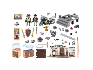 Playmobil: Múzeumi rablás adventi kalendárium 71347. Tartalma: 1 rendőr, 1 rabló, 1 pók, 1 sisak, 2 kesztyű, 1 pisztoly, 1 bilincs, 1 robot, 1 távirán...