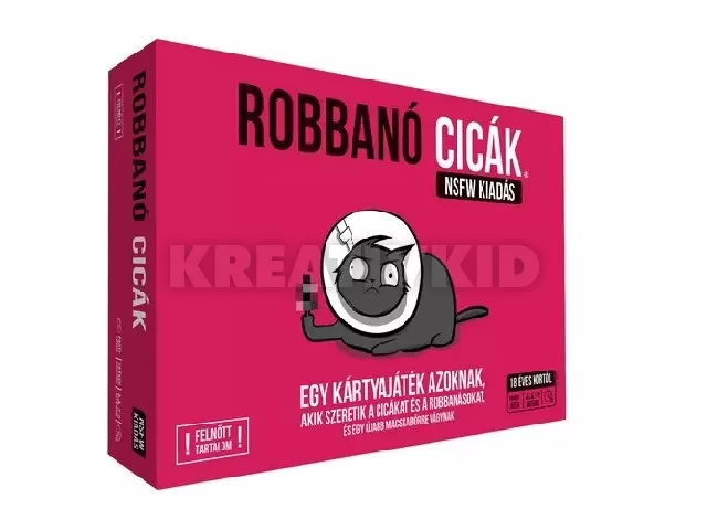 Fergeteges partijáték felrobbanó cicákkal, felnőtteknek szóló arculattal és féktelen röhögéssel! A Robbanó cicák - NSFW kiadás pörgős és vicces extrém partijáték. Ebben a társasjátékban a játékosok meg akarják úszni, hogy robbanó cica kártyát húzzanak a pakliból. Ezért ravasz trükköket vetnek be: lapokat csennek egymástól, megakadályozzák kártyák kijátszását, a megfelelő pillanatban újrakeverik a paklit...