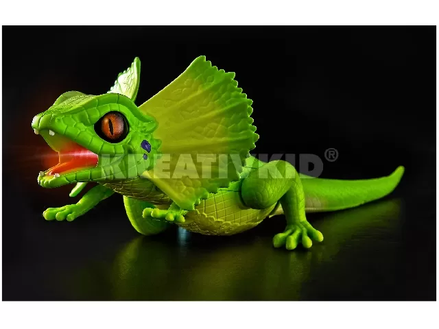 Fedezd fel a gyíkok életét ezzel az élethű robot állattal, aki pont úgy mozog és viselkedik, mint az igazi. Kapcsold be, tedd le a földre és figyeld, hogyan cikázik össze-vissza. Fejét és farkát puha gumi borítja, érintése olyan, mint az igazi állat bőrének. Szája világít a sötétben, hogy távol tartsa a nagyobb ragadozókat. A gyík gyorsan szalad és támadásra készen mozgatja a fejét. A robottechnológia lehetővé teszi, hogy a leggyorsabb ragadozókat is megelőzve rohanjon – vajon te, el tudod fogni?