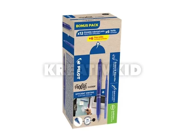 Rollertoll, 0,35 mm, törölhető, nyomógombos, PILOT "Frixion Clicker, Bonus Pack", kék + betét