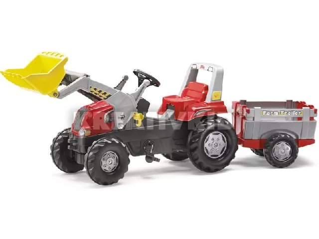 Junior pedálos traktor markolóval és Farm Tailer utánfutóval a Rolly Toys termékkínálatából.