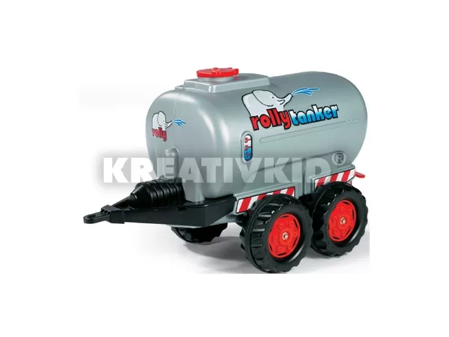 A tanker a Rolly Toys traktoraihoz és egyéb járműveihez csatlakoztatható, kiegészítő játék. A tanker vízzel feltölthető, összesen 30 literrel, amely a hátul található csappal kifolyatható. A tanker utánfutó kéttengelyes, nagyon stabil. A tartálykocsi ezüst színben különféle matrica díszítésekkel kapható.