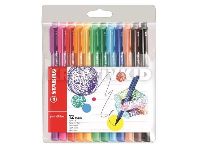 Rostirón készlet, 0,8 mm, STABILO "Point Max", 12 különböző szín