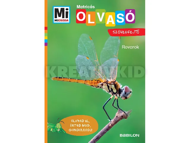 Prücsi, a sáska kedvenc állatairól, a rovarokról mesél. A feladványokkal ellenőrizheted, hogy olvasás közben mindent jól értettél-e. Fejtsd meg a csalafinta rejtvényeket, és keresd meg a matricák helyét!Egyszerű szövegek kezdő olvasóknak. A fejtörők segítik a szövegértést. Gyakorlás közben javul az olvasási készség.Olvasói célcsoport: 13. osztályA Mi MICSODA Olvasó Rovarok kötetét kiegészítő vagy önállóan is használható foglalkoztató. Prücsi, a sáska vezeti az olvasókat. Az oldalpárba rendezett, rövid ismeretterjesztő szövegeket változatos rejtvények és a szövegértést segítő feladatok követik. Milyen a rovarok testfelépítése? Hogyan fejlődnek ki a petéből a rovarok? Milyen védekező trükköket vetnek be veszély esetén? Miért fontosak a rovarok?