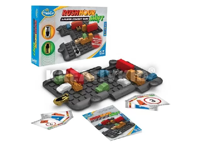Rush Hour Shift a Thinkfun 2 személyes logikai játéka, amely a világszerte ismert logikai autós játékcsalád újdonsült tagja. A logikai tologatós játékban egy ezüst és egy arany autóformával játszhattok, amellyel a cél átjutni a pálya végére.