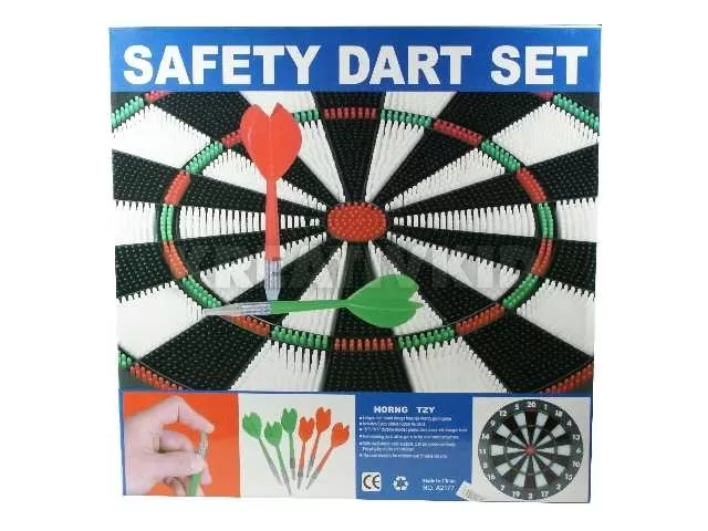 Dobjatok célba, ki a pontosabb? A Safety Darts tábla nyilakkal biztonságos célbadobó játék, amivel a szabályos darts játékot tudjátok gyakorolni. A tábla puha tüskékkel van borítva, a nyilak a tüskék között megakadnak és nem esnek ki a táblából. A darts dobónyilak műanyag heggyel készültek, a táblát acél állvány tartja, a Safety Darts tábla nyilakkal készletet gyerekek és felnőttek is használhatják! A tábla átmérője: 42 cm.