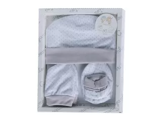Puha és minõségi ajándékszett újszülötteknek körülbelül 3 hónapos korig. 56-os méret. Spanyol minõség. Anyaga: 100% pamut. 3 darabos készlet, tartalma...