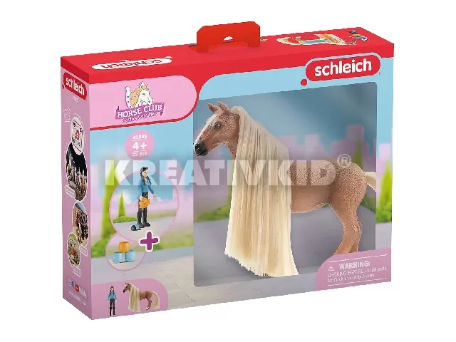 A Schleich Horse Club különleges újdonsággal kedveskedik a rajongóinak. A Kim és Caramelo kezdő készletben egy fésülhető sörényű világosbarna ló és egy lovas lány is megtalálható. A gyerekek eljátszhatják és megtanulhatják, hogyan kell gondozni egy lovat. Sörényébe és hosszú lófarkába csatokat és díszeket tehetnek, felkészíthetik a díszes nyeregtakaróval egy bemutatóra. A lovas végtagjai mozgathatóak, így ráültethető a lóra, valamint az elengedhetetlen kobakot is a fejére lehet tenni.