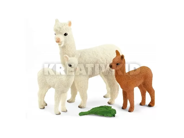 A Schleich® WILD LIFE alpakakészlet állatai a dél-amerikai Andokból származnak, ahol puha, meleg gyapjújuk miatt tenyésztik őket. Púp nélküli tevék, természetük nyugodt és barátságos. A két fiatal állatnak különböző a bundájuk: az egyik fehér, a másik barna. Anyjuk 6-8 hónapig szoptatja őket, mielőtt elkezdenének füvet enni.