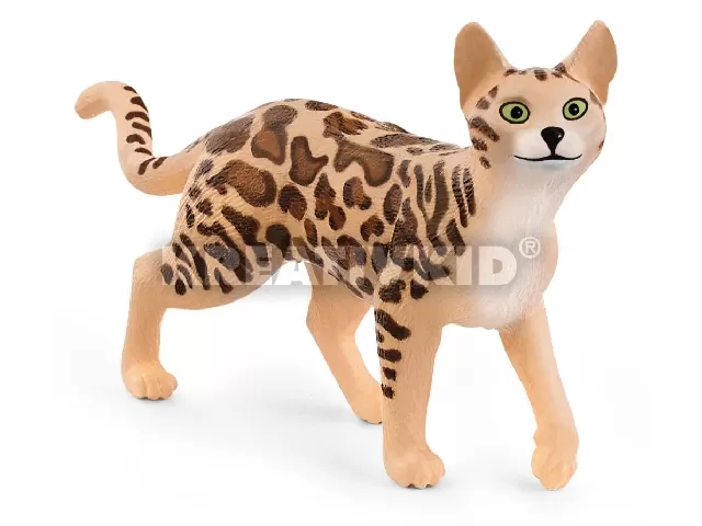 A Schleich® FARM WORLD termékcsaládhoz tartozó bengáli macska úgy néz ki, mint egy mini leopárd. De nem csak a bundája az egyetlen szokatlan dolog ezen a macskán, hanem egyedi karaktere is. A bengáli macska nagyon élénk, és egész nap bír mászkálni és ugrálni. Mindent kíváncsian figyel, ami csak történik. Azon kevés macskafajták egyike, amelyik szívesen játszik a vízzel.