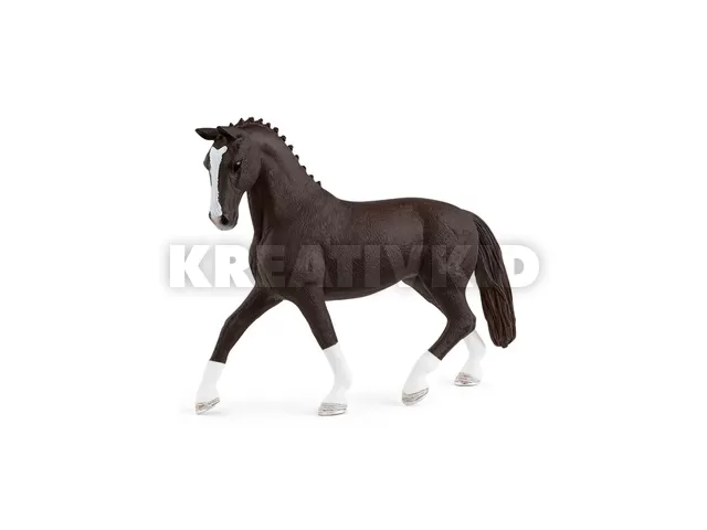 A Schleich® Horse Club termékcsaládhoz tartozó hannoveri kanca fekete sörénye kis fonatokba van rendezve. Élénk pózából látszik, hogy tele van energiával, és alig várja, hogy szerepelhessen a lovasával együtt. A hannoveri lovak a legrégebbi melegvérű fajták közé tartoznak, és kiváló versenylovak. Könnyen idomíthatóak, bátrak és elszántak, és szelíd, kedves a természetük.