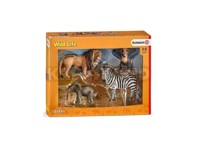 Tartalma: 1 db csimpánz figura, 1 db zebra figura, 1 db elefánt figura, 1 db oroszlán figura.