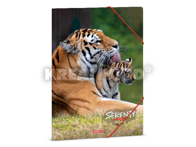 A/4 méretű gumis dosszié iratok, füzetek tárolására. 350 gr-os vastag kartonból készült dosszié lekerekített első sarkokkal, színes gumi zárópánttal. Külseje négy színnel, fényes fóliával nyomott. Belső oldala nyomatlan.