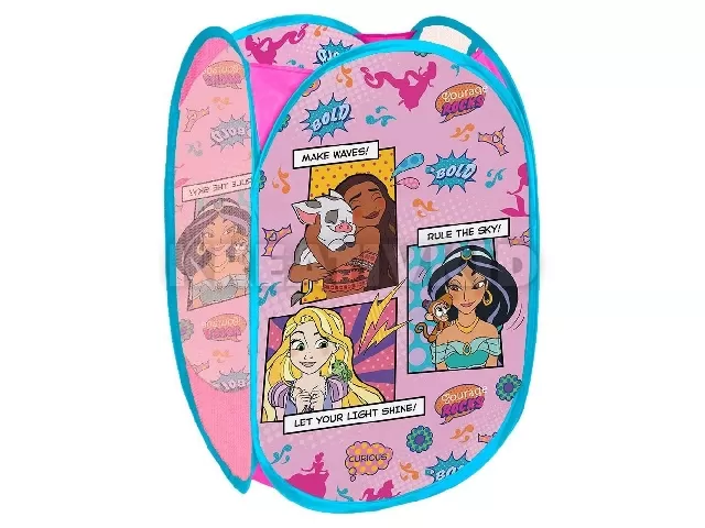 A fogantyúkkal elátott jégvarázsos játéktároló megkönnyíti a játékok tárolását.
