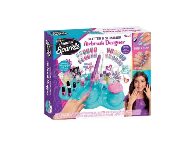Cra-Z-Art Shimmer ’n Sparkle Festékszórós manikűrszalon gyerekeknek. A szett segítségével a kislányok fantasztikus körmöket készíthetnek el, nem is akárhogy: festékszóróval. A csomagban a manikűrállomás mellett rengeteg kiegészítő rejlik, így a csillogó végeredmény garantált.