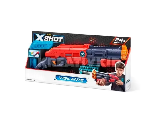 Az X-Shot Vigilante dupla csövű játékfegyver extrém lövő erővel és hajszálpontos lövéssel tökéletes eszköz a szabadtéri harci játékokhoz. Egyszerre 2 csőből is lőhetsz vele, lőtávolsága akár 27 méter is lehet. A szettben 1 puska és 24 töltény található. A játékot 8 éves kortól ajánljuk.
