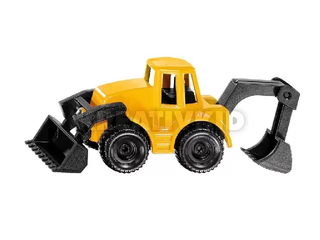 Két építőgép egyben: egy kerekes rakodó elöl nagy kanállal, egy kotrógép egy keskeny kanállal hátul. Sok mindent eltávolíthatsz vele. A homlokrakodó és a kotrókanál fel-le mozgatható. A készlet fémből és kiváló minőségű műanyagból készült. A készlet mozgatható elemeket és gumikerekeket tartalmaz, jelölt futófelülettel.