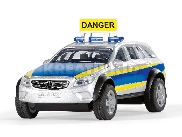 A siku All Terrain 4x4 rendőrautója igazi off-road specialista. Egyetlen lejtő sem túl göröngyös számára, nincs túl egyenetlen terep, egyik munkaterület sem túl sziklás – a Mercedes Benz rendkívül terepjáró E-osztályú mentőautója mindenhol megtalálja az utat.