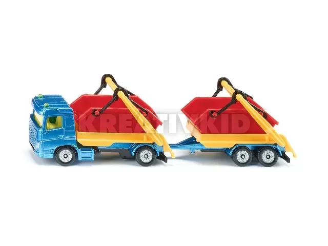 Vontatóként egy kéttengelyes, fém fülkés teherautó szolgál, az utánfutó tandemtengelyes alvázzal és fém talapzattal rendelkezik. A kamionon és a pótkocsin egy-egy konténer szállítható. A jármű mindkét részén található emelőszerkezet mozgatható, így a konténerek nagyon könnyen fel- és kirakodhatók. A simán futó kerekek biztosítják a mobilitást és megkönnyítik a manőverezést. Az élénkpiros konténerek feltűnő kontrasztot alkotnak a sárga karú kék teherautóval. Ezzel a színes és sokoldalú járművel új építkezési forgatókönyvek játszhatók újra és újra!