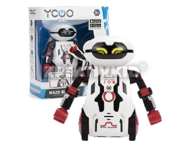 MAZE BREAKER egy interaktív robot, amely képes táncolni, hangfelvételt lejátszani, útvonalat vagy labirintust követni. MAZE BREAKER különféle beviteli parancsokra reagál: Követi a fekete vonalakat, megtalálja a labirintusból kivezető utat, vagy egy zárt hurkon belül marad. A MAZE BREAKER átalakítja a beviteli üzeneted robothangra és visszajátssza. A kiadott hangparancstól függően különféleképpen reagál. A MAZE BREAKER irányítható mobilalkalmazással is, amely elérhető IOS vagy Android verzióban is. Reagál más MAZE BREAKER robotokra, vagy egyéb Silverlit Robotra. Nézd meg az ingyenes alkalmazást és tudj meg többet. Tartozékok: MAZE BREAKER x 1, Használati Útmutató x 1, Útvonal térkép x 1. Anyaga: műanyag. Elemszükséglet: 2 x 1,5V AAA elem.